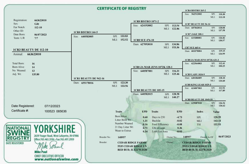 共有21個(gè)血統(tǒng),綜合選擇指數(shù)平均為143.9,前10%為170.2,最高為182.0